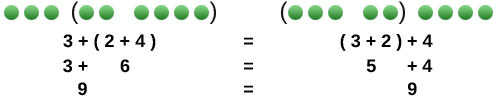 For any whole numbers a, b and c. To add three numbers such as , we can add only two at a time, then add the third.